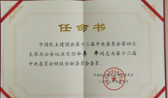 我院金融系三级教授、博士生导师、金融大数据与金融工程研究中心主任李平被任命为民建第十二届中央委员会财政金融委员会委员,她同时也是北京市第十六届人大代表、海淀区第十一届政协委员、民建北京市第十二届委员会常委暨金融委主任。