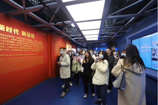 首先参观的是以“伟大觉醒,孕育新生”为主题的序厅,回顾学校筹建史。在国家“急需办一所航空大学”的需求下,全国八校合力,北航前身——北京航空学院为国而生。同学们在参观中不仅被“工棚里上课,路灯下读书”场景体现的北航精神所感动,更深切体会到北航筹建和创办的艰难与不易。