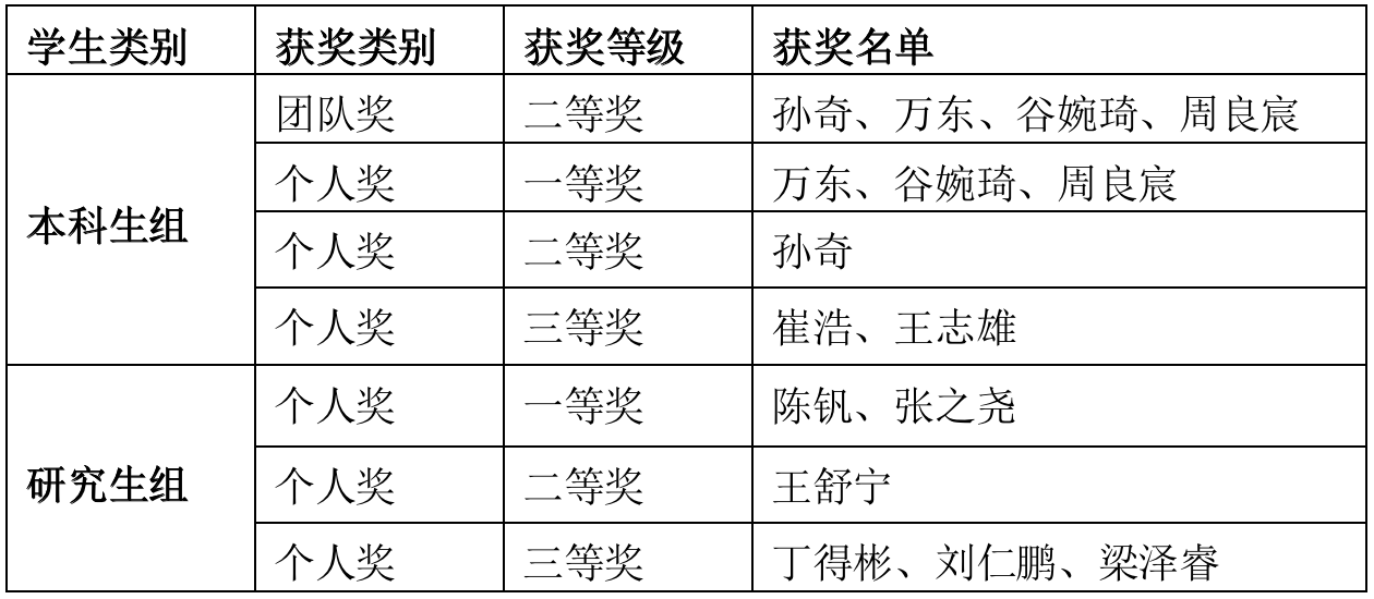 研究生组获得个人一等奖2项,个人二等奖1项,个人三等奖3项。