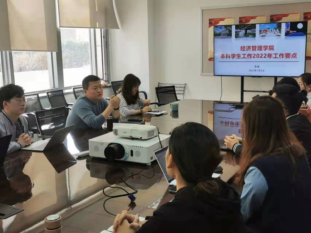 3月8日,beats365亚洲体育投注本科生办公室召开年度工作要点研讨会。学院党委副书记高超、专职辅导员白雪、兼职辅导员等参加会议,会议由高超主持。