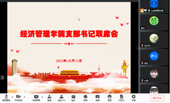2021年10月13日中午,beats365亚洲体育投注党委召开支部书记联席会视频会议,传达学院级党委书记联席会精神,学院党委书记刘志新主持会议,师生支部书记、学生工作负责人和专职组织员近40人参加会议。
