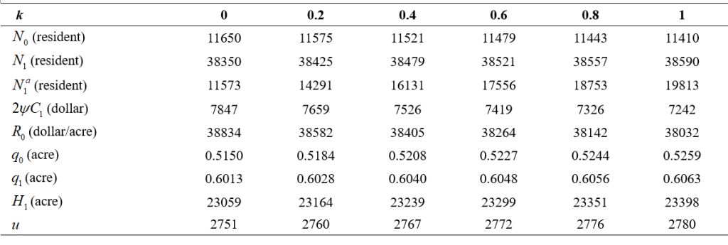 表1.The effect of automation levelk on urban characteristics.