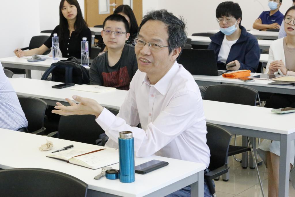我院青年教师张思萱副教授首先进行了两个主题单元的教学展示。随后,北京市教学名师周卫中教授和张有光教授分别从课程内容设计、语言表达、板书设计等方面进行了细致的点评。