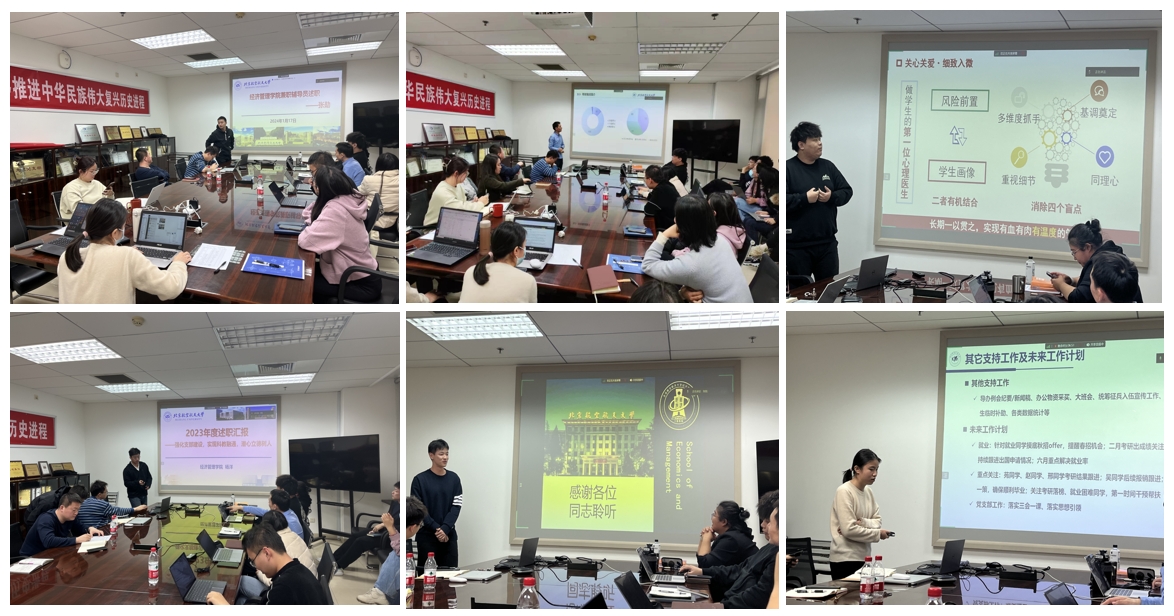 全体兼职辅导员依次进行述职,就带班工作、学生党建、心理健康、学生资助、就业指导、学业支持、文化宣传等各个方面,汇报工作思路、问题、成效以及改进措施,并对下年度的工作进行展望。