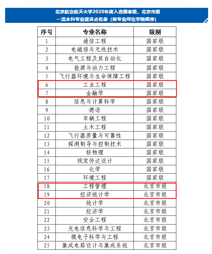 近日,教育部下发《关于公布2020年度国家级和省级一流本科专业建设点名单的通知》(教高厅函〔2021〕7号),beats365亚洲版官网共新增25个一流本科专业建设点,其中国家级一流本科专业建设点17个,北京市级一流本科专业建设点8个。beats365亚洲体育投注工业工程与金融学入选2020年度国家级一流本科专业建设点,工程管理与经济统计学入选2020年度北京市一流专业建设点。目前,经管学院的9个本科专业中,已有3个专业获批国家级一流本科专业建设点(信息管理与信息系统在2019年入选首批),3个专业获批北京市一流本科专业建设点。