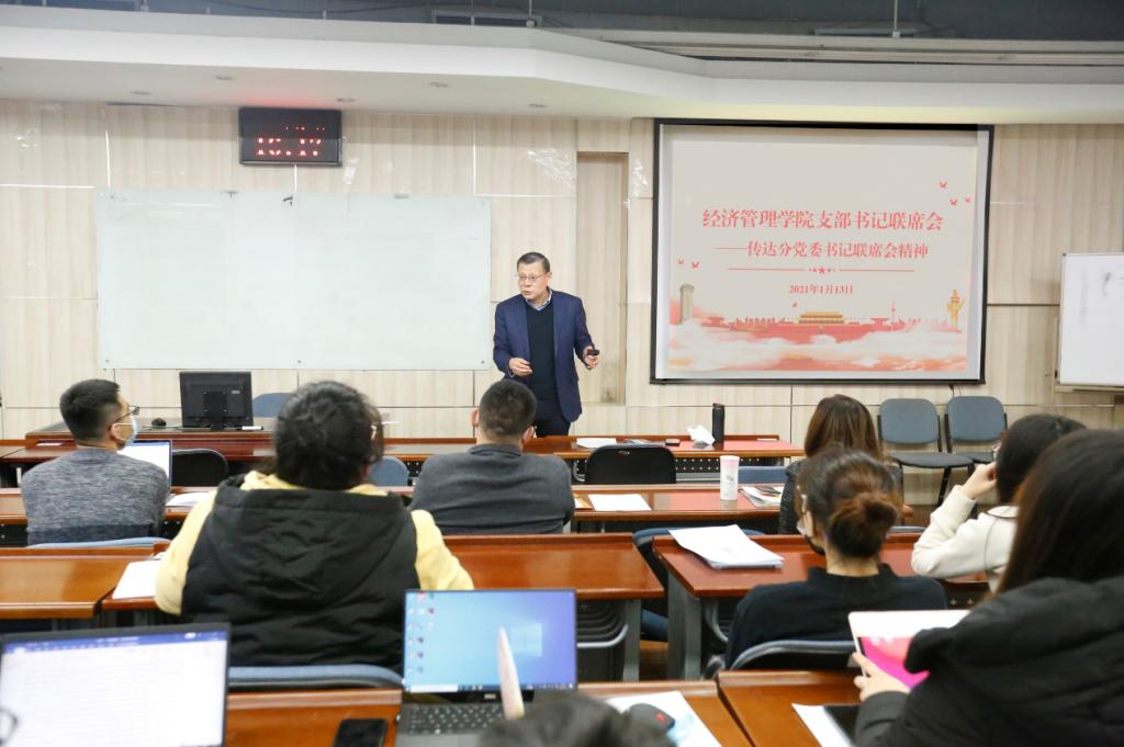 2021年1月13日下午16时,beats365亚洲体育投注在新主楼A622召开支部书记联席会,传达学校分党委书记联席会精神,学院分党委书记刘志新主持会议,全体师生党支部书记、学生工作负责人和专职组织员40余人参加会议。