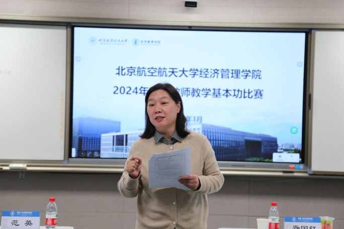 为了加快青年教师成长的步伐,提高青年教师课堂教学能力,夯实业务基本功,引导和鼓励教师上好每一堂课,经管学院于3月20日举办了2024年青年教师教学基本功比赛。学院数十位青年教师参加了现场比赛。比赛评委由北京市教学名师、优秀主讲教师、思政名师、北航教学督导组成员等专家组成。