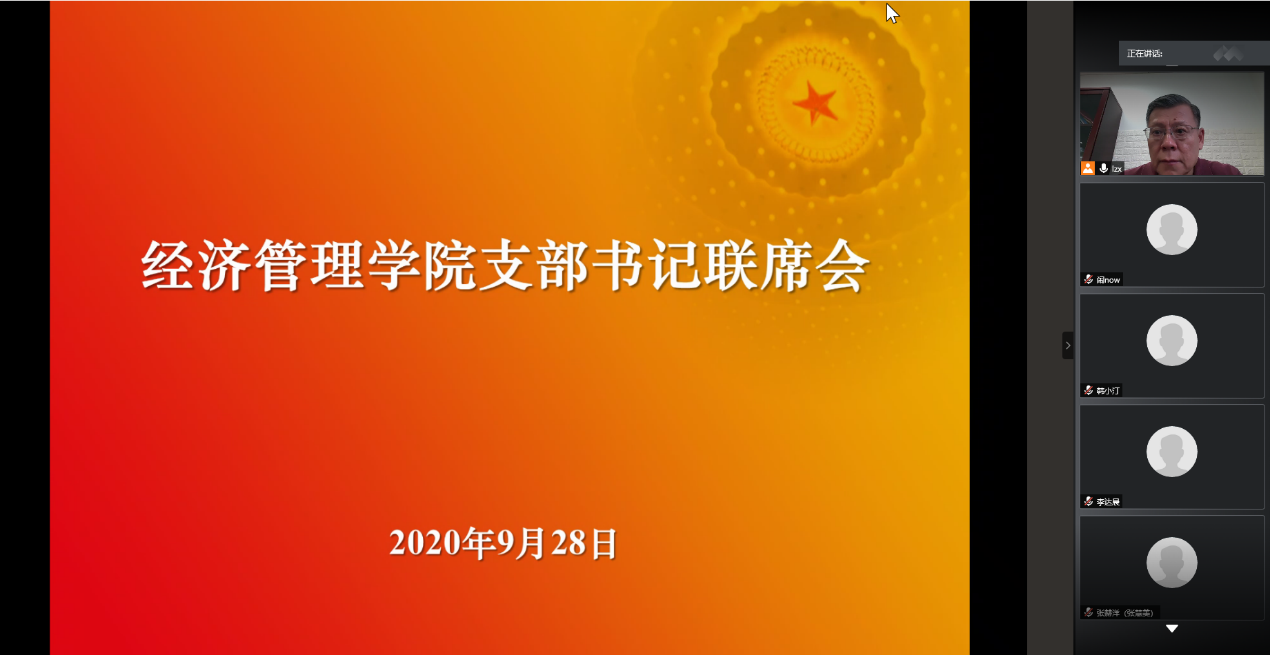 2020年9月28日下午4时,beats365亚洲体育投注召开支部书记联席会,传达学校分党委书记联席会精神并组织集中学习,学院分党委书记刘志新主持会议,全体师生党支部书记、学生工作负责人和专职组织员40余人参加会议。