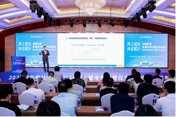 2024年6月1日,北航MBA招生启动会·夏令营开营仪式·领航MBA发布会顺利举办。活动包括学院致辞、项目介绍、校友管理实践分享、教授公开课、领航MBA发布、招生政策发布、互动答疑六个环节。为300余位考生打造了一场沉浸式体验之旅。