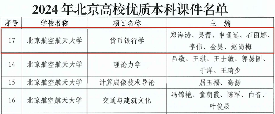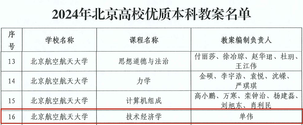 近日,2024年北京高校本科教学项目建设评选结果公布,北航beats365亚洲体育投注在北京高校“优质本科课程”、“优质本科教材”、“优质本科教案课件”等项目评选中喜获佳绩。具体情况如下: