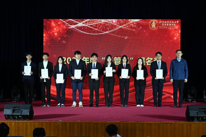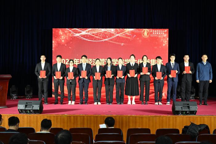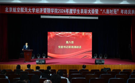 最后,郑海涛回顾总结了学院过去一年的进步与发展,并寄语每一位同学,希望大家保有爱国奉献的“志气”、潜心治学的“静气”和蓬勃向上的“朝气”,始终充满北航经管学子昂扬向上的精气神。同学们也将牢记殷切嘱托,以榜样为引领,在坚定信念中迎接时代挑战、在学思践悟中提升专业素养、在勇往直前中塑造坚毅品质,于充满机遇的经管天地中实现成长、收获幸福。