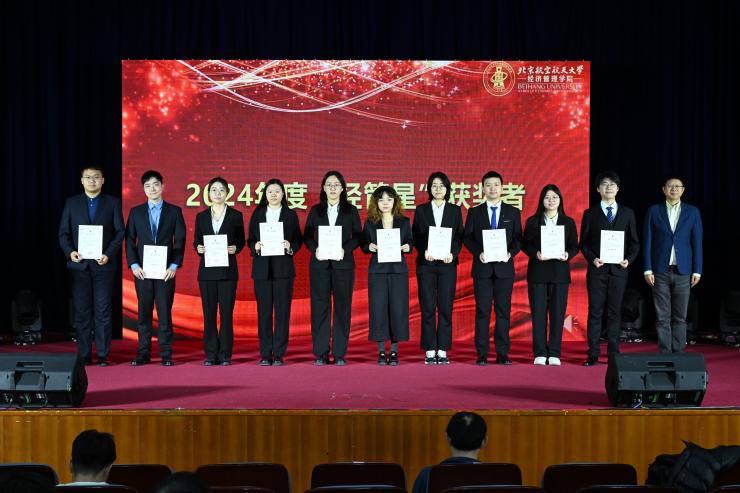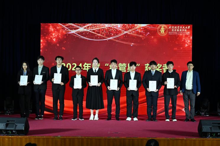 紧接着,副院长秦中峰宣读了对2024年度优秀集体的表彰决定,并为优秀集体代表颁奖,表彰他们在学术研究、社会实践、文体活动等方面取得的骄人成绩。这些优秀集体不仅在日常生活中为学生们树立了榜样,同时也在更广阔的舞台充分展示了北航经管学子卓越的精神面貌和综合素质。