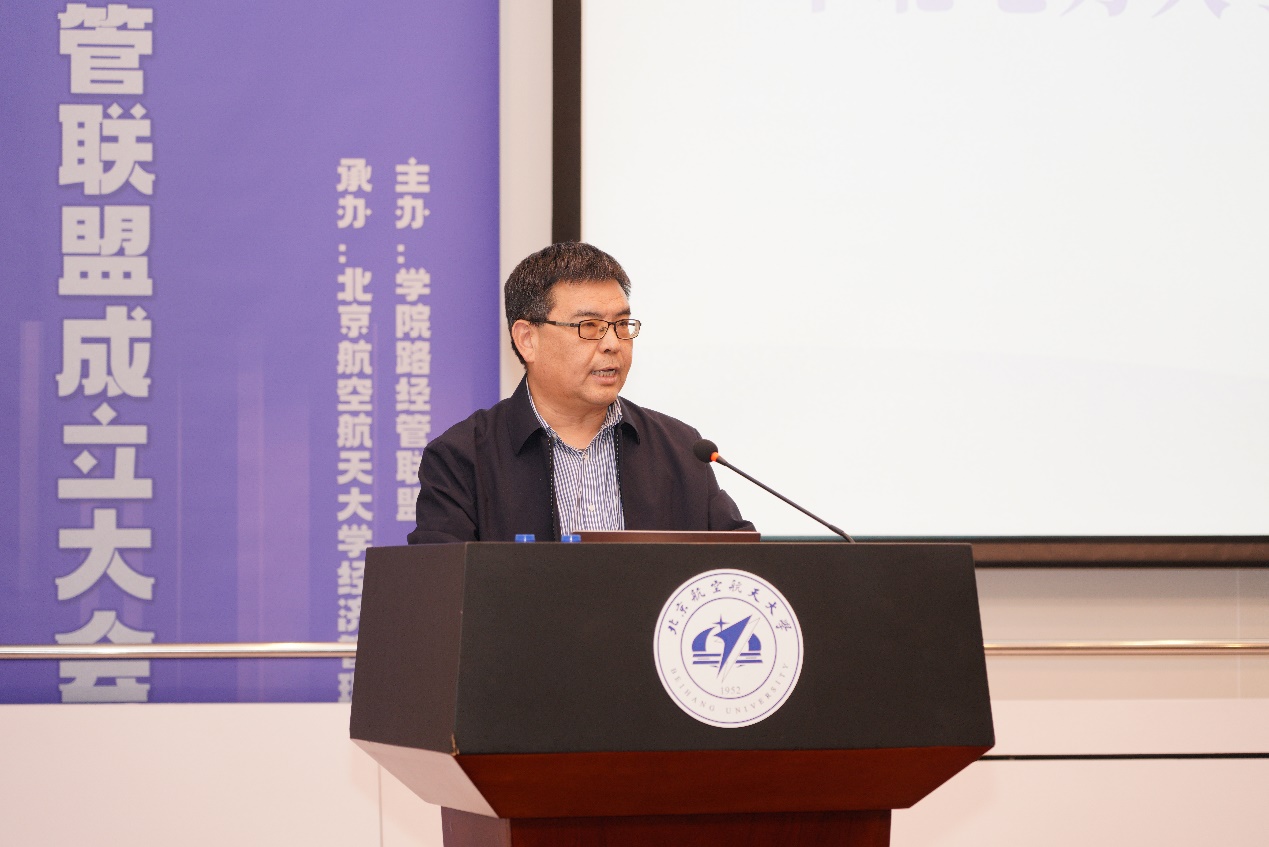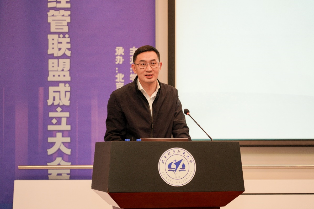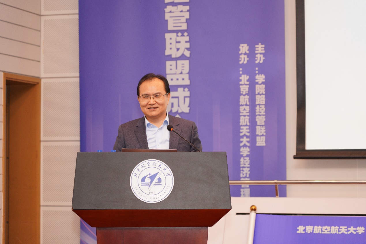 华北电力大学经济与管理学院院长李彦斌代表联盟成员致辞。他指出,联盟的成立为学院路高校间的深度合作提供了全新平台,将有力推动经济管理学科的交叉融合与创新发展。联盟各成员单位以联盟为纽带,深化合作、携手共进,共同开辟经济管理学科发展的崭新格局。