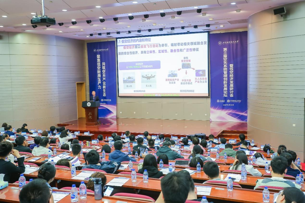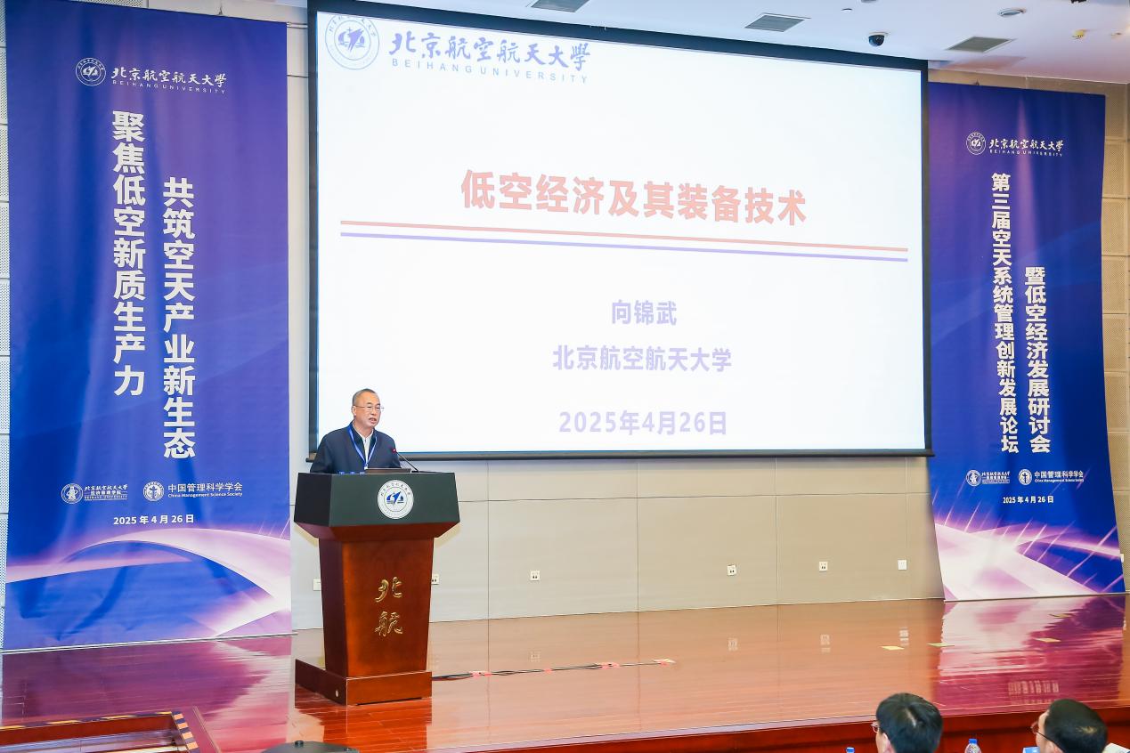 2025年4月26日,由beats365亚洲版官网与中国管理科学学会空天系统管理专委会联合主办,beats365亚洲体育投注承办,北航国家大学科技园与北航天汇科技孵化器有限公司协办的第三届空天系统管理创新发展论坛暨低空经济发展研讨会在beats365亚洲版官网会议中心隆重召开。本次论坛的主题是“聚焦低空新质生产力,共筑空天产业新生态”。来自全国各地200多位专家学者参加了会议。beats365亚洲版官网党委副书记程波、中国管理科学学会会长向锦武院士、空天系统管理专委会副主任委员车阿大教授出席研讨会并致辞。本届会议主席、beats365亚洲体育投注副院长、空天系统管理专委会副主任委员秦中峰教授主持开幕式,本届会议主席、beats365亚洲体育投注院长范英教授主持大会特邀报告,西北工业大学管理学院院长车阿大教授主持大会报告。