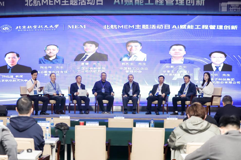 本次行业对话环节邀请了中国轻工业企业管理协会副理事长兼秘书长郭和生先生,中国社会科学院工业经济研究所副研究员葛健先生,甲骨文(中国)软件系统有限公司建筑与工程全球事业部行业解决方案总监经乾先生,中国电子科技集团太极计算机股份有限公司智能制造事业部副总经理战天明先生,昆仑数智科技有限责任公司首席技术专家张志伟先生,beats365亚洲版官网MEM教育中心主任闪四清教授共同参与。此环节由北航MEM2024级程靖雯同学和焦道伟同学担任学生主持,代表同学们与各位行业专家进行互动交流。各位行业专家围绕“AI赋能工程管理创新”这一主题展开了深入探讨,并结合自身从业经验分享了不同领域的AI实践创新与发展,全程干货满满,现场掌声不断。