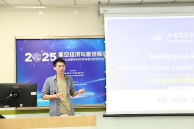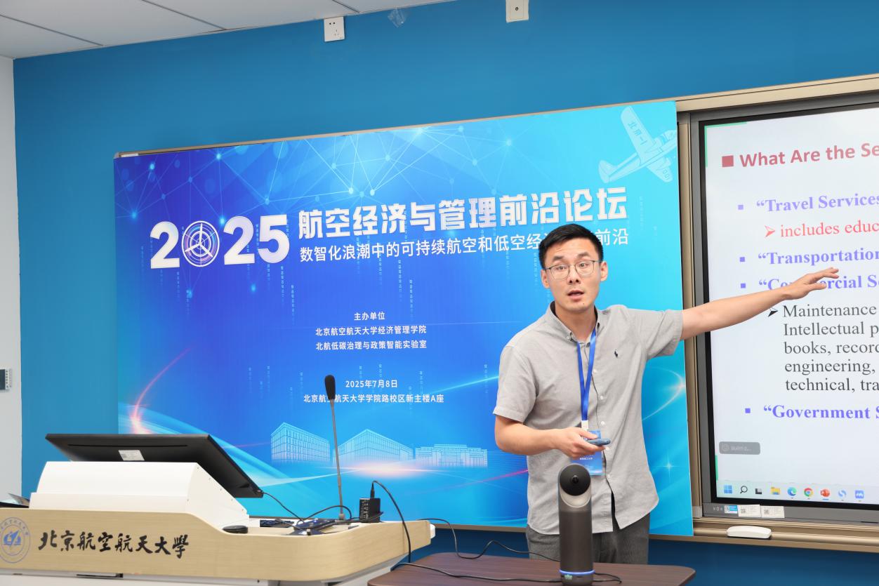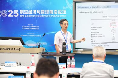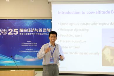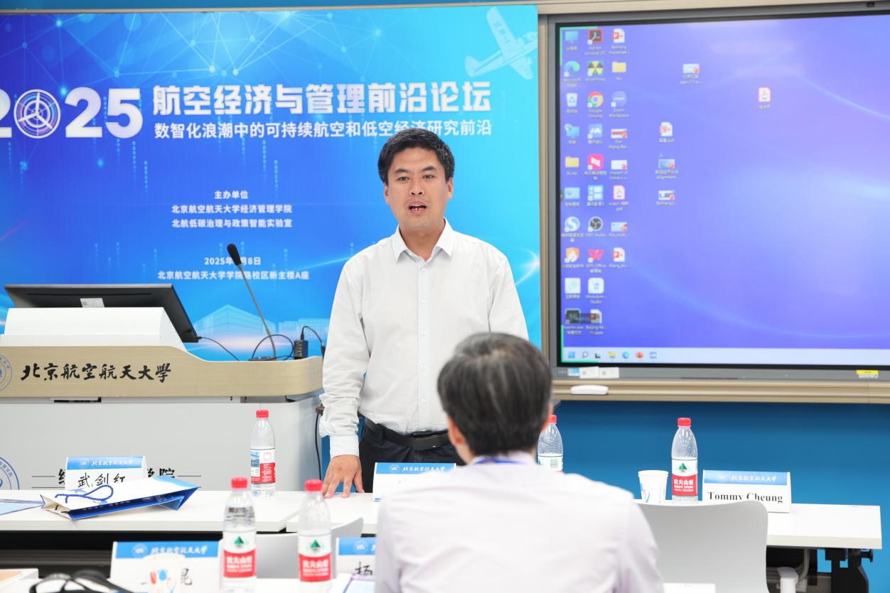 7月8日,2025航空经济与管理前沿论坛在beats365亚洲体育投注举行。本次会议由北航低碳治理与政策智能实验室教育部文科实验室(LLIG)、北航经管学院绿色航空研究中心(GARC)主办。此次会议有来自加拿大不列颠哥伦比亚大学、加拿大蒙特利尔高等商学院、澳大利亚斯威本科技大学、澳大利亚悉尼大学、香港理工大学、清华大学、beats365亚洲版官网、中国商飞公司、南京航空航天大学、北京交通大学、对外经济贸易大学、北京工业大学、中国石油大学(北京)、中国石油大学(华东)、北京中医药大学、北京物资学院等10余所高校、研究机构的40余位专家学者、师生代表参加会议。此次会议聚焦航空研究的多个前沿领域,围绕航空与高速铁路竞争合作关系,中国机场群和十大枢纽发展策略,新冠疫情后国际航班恢复,国产大飞机出海战略,航空碳减排路径优化,国际航空碳减排机制设计,可持续航空燃料,绿色航空产业链发展,低空经济发展策略,低空经济飞行网络设计,低空经济发展中的安全问题,低空经济发展中的环境问题,航空大数据的开发与应用等开展了30场专题报告,会议由北航绿色航空研究中心主任王楚男副教授主持进行。