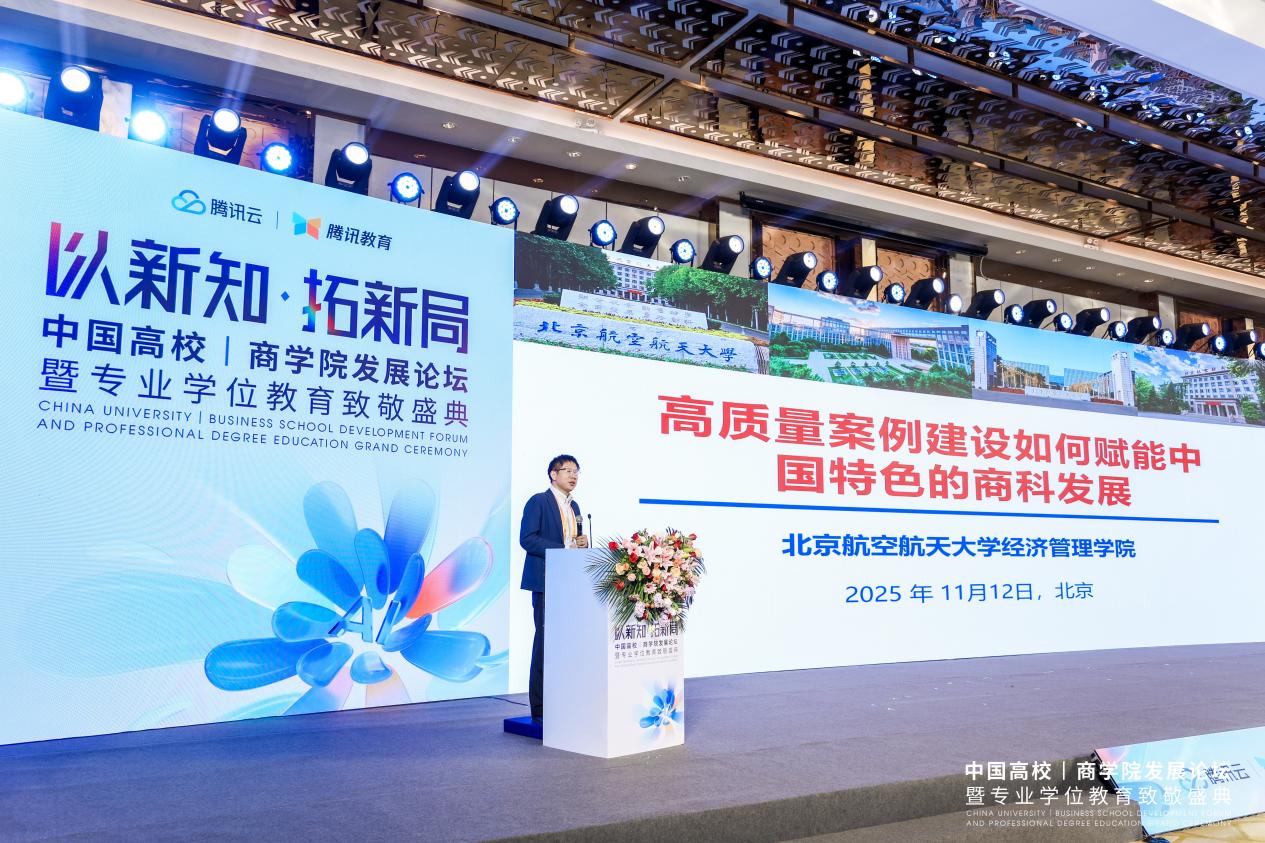 beats365亚洲体育投注党委书记郑海涛教授应邀出席论坛,并发表主题演讲《高质量案例建设如何赋能中国特色商科发展》。郑书记以北航经管学院案例建设的迭代升级为主线,系统阐释了案例建设的关键举措与体系创新,展示了案例成果如何深度融入社会服务,推动商科教育与产业实践同频共振、持续创造价值。