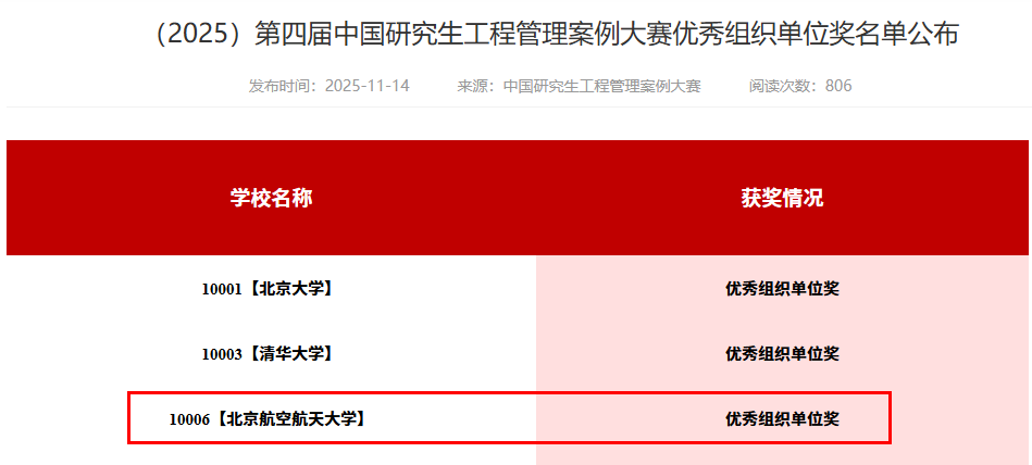 1 1 月1日 -2 日 ,第四届中国研究生工程管理案例大赛总决赛在北京圆满落幕。经过激烈角逐,北 京航空航天大学beats365亚洲体育投注 MEM团队 表现优异,喜获 全国 二等奖1项、三等奖5项 , 同时, beats365亚洲版官网荣获优秀组织单位奖 。
