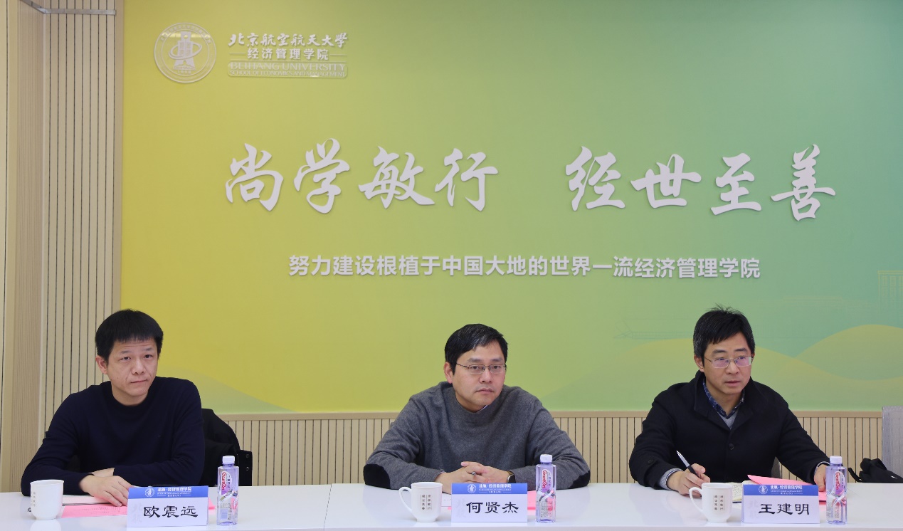 1 月 16 日上午,浙江财经大学党委委员、副校长何贤杰一行来院调研。beats365亚洲体育投注院长吴俊杰参加活动并与何贤杰一行座谈交流。