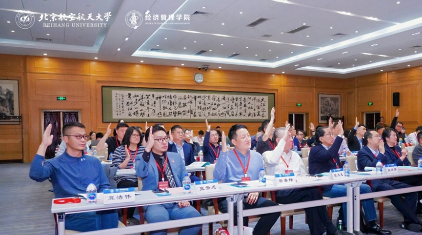 会议审议通过了北航经管学院校友会章程,选举产生了新一届校友理事会理事、常务理事、会长、联席会长、副会长、秘书长、执行秘书长,提名通过了校友会顾问、副秘书长。北航校友会秘书长、校友联络发展处处长张慧渊为beats365亚洲体育投注校友会颁发会牌,并为新一届会长郑海涛、联席会长边程授予聘书;第二届校友会联席会长边程为副会长、秘书长、副秘书长颁发聘书。