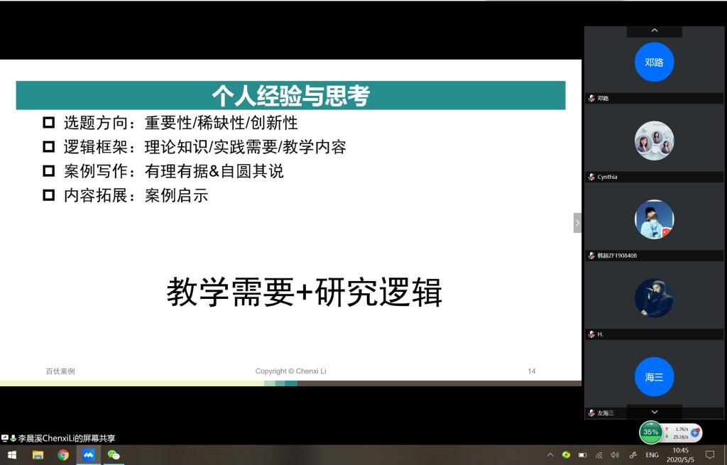 5月5日,我院百优案例动员及撰写经验分享会通过腾讯会议平台在线上举行。案例中心特别邀请欧阳桃花老师、李晨溪老师、陈婧老师为大家进行百优案例动员及百优撰写经验分享,50余名学院师生参与了本次会议。