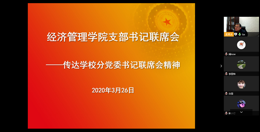 2020年3月26日下午16时,beats365亚洲体育投注通过视频会议方式召开支部书记联席会,传达学校分党委书记联席会精神,教工、学生支部书记、副书记和学生工作负责人40余人参加会议,分党委书记刘志新主持会议。