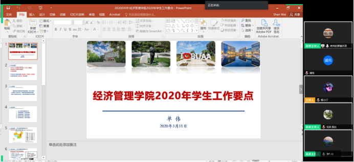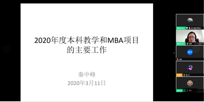 秦中峰副院长就本科教学和MBA项目做了报告。他指出,在特殊时期,学院将按照学校疫情防控工作安排,做好延期开学阶段的线上教学工作。本学期继续进行双万计划、申报国家级和校级一流本科课程建设,积极开展年度本科教学改革与创新工作。MBA教育中心方面,将启动认证与评估、招生宣传与招生管理等工作,推进教学管理与beats365唯一官方网站,继续进行学生管理与校友会工作。