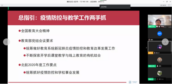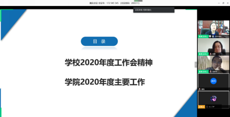 为传达学校年度工作会精神和疫情防控工作精神,部署学院年度主要工作,学院于3月11日召开线上全院教工大会,全院教职工通过腾讯视频会议参会,会议由分党委书记刘志新主持,全院教工近130人参加了线上会议。