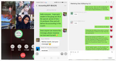 学院课程逐渐展开,除国内课程之外,国际课程也在同时开启。大部分留学生都在自己的国家,与中国有较大时差。针对这一难点,学院教师许文媞、姚唐、马琳等,认真与每个留学生沟通,确定合宜的上课方式,采用录制有声课件、直播、录播结合微信群答疑等方式,顺利实现在线教学。