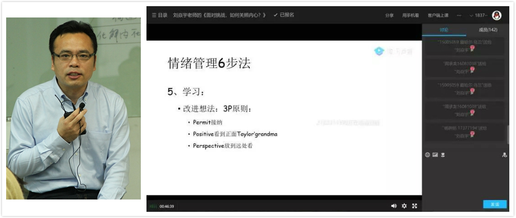 为引导同学们修身自律、保证学业。学生工作部门创新用足微信、视频等平台功能,策划了“居家科研学术指南”、“在线开学宅家学习小指南”、“线上大班会”、“书写信心”等活动。并邀请我院领导力与组织管理系教师,《幸福心理学》的主讲刘焱宇老师为大家带来题为《面对挑战,如何关照自己的内心》的线上直播讲座,引导同学们在了解消极情绪的来源后,如何正确地处理自己的消极情绪。