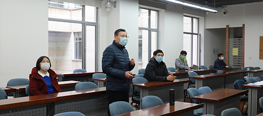 在新主楼A622多媒体教室,校长徐惠彬听取了分党委书记刘志新关于学院疫情防控总体情况、人员数据情况、隔离观察执行情况、办公和实验室管理情况、思想政治工作情况、线上教学情况的汇报,并查阅了有关资料,着重了解学院疫情防控工作落实情况和具体做法,并对学院疫情防控工作给予了肯定。