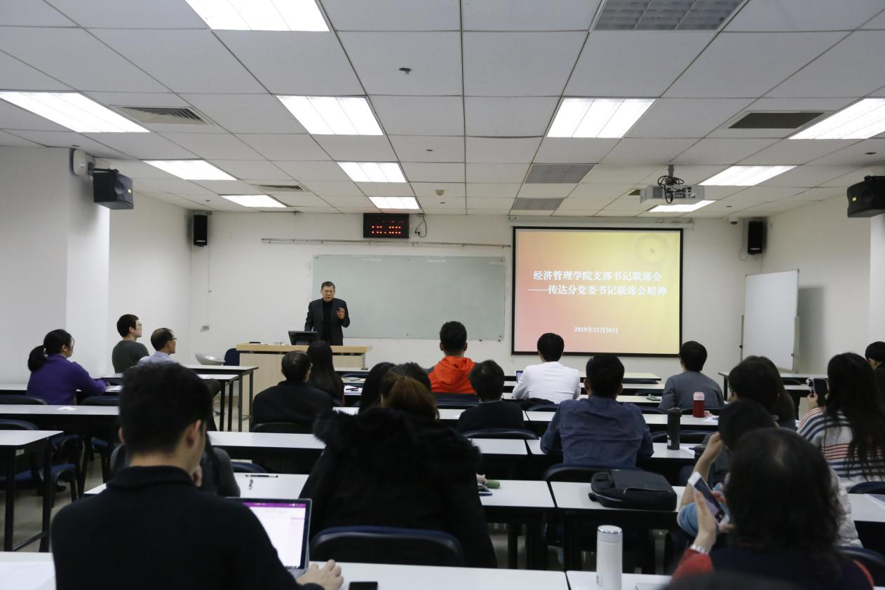 2019年12月26日,学院召开党支部书记联席会,学院党委书记刘志新主持会议,全体教工支部支委、学生支部书记及学生工作负责人参加会议。