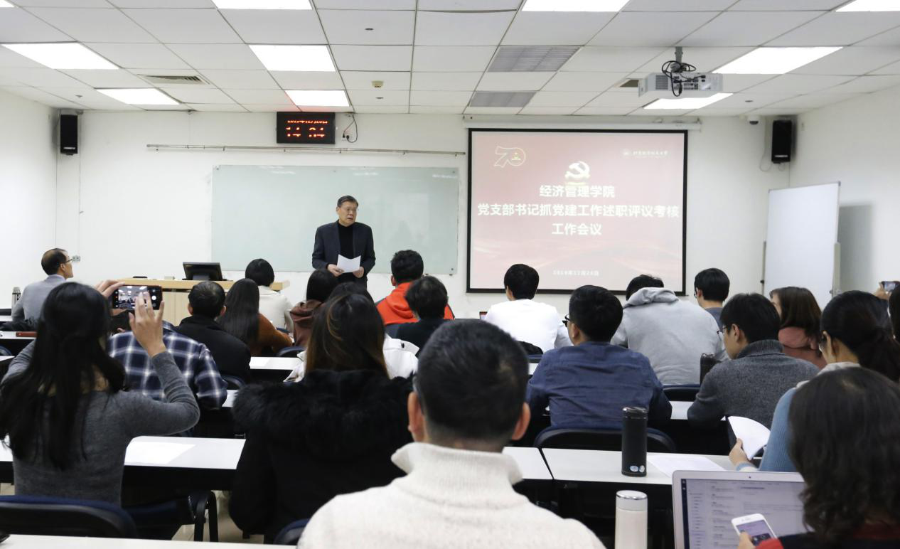 2019年12月26日,学院按照学校党委工作要求,在新主楼A949教室召开2019年度党支部书记抓党建工作述职评议考核工作会议,学院班子成员、各支部书记以及教师、学生代表参加了会议。会议由分党委书记刘志新主持。
