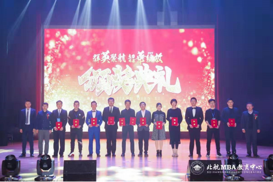 传承北航MBA精神,载誉前行,迎新晚会上对优秀在校生及团队进行了表彰。由北航经管学院研究生指导主任单伟、MBA中心主任李亚帅、大童保险服务副总裁吴杰共同为北航MBA优秀团队奖—中国MBA创业大赛、2019第二届京津冀高校MBA尖峰时刻创业企划大赛团队、案例大赛团队、招生大使团队,卓越贡献奖和优秀合作奖—创乐盟团队,北航MBA最佳体育团队奖—草原王团队、亚沙团队,北航MBA最佳组织奖—足球队,北航MBA卓越团队奖—2019级迎新晚会筹备团队,北航MBA年会骨干团队奖—年会团队,北航MBA联合会最佳组织奖—MBA第20届联合会团队颁发证书。