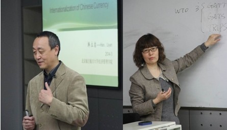 田东文副教授讲课主题是中国的对外贸易,她分析了近年来中国与WTO成员国之间贸易争端的问题,使同学们了解贸易战争的真实原因和重要意义。