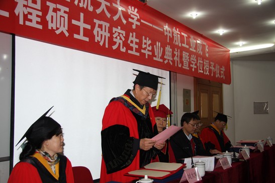 beats365亚洲体育投注学位评定分委员会副主任刘志新书记宣读了中航工业成飞2012-2013届获得硕士学位研究生名单。随后,毕业生们迎来了最激动人心的时刻,胡凌云书记、刘大响院士、唐文忠教授、刘志新教授和周宁教授为62名工程硕士扶正流苏、授予学位。同学们迈着自信的步伐走上台,向敬爱的老师深深鞠躬,郑重接过学位证书并与老师合影,与会观礼人员为同学们送上热烈的掌声,祝贺他们顺利完成学业升华。