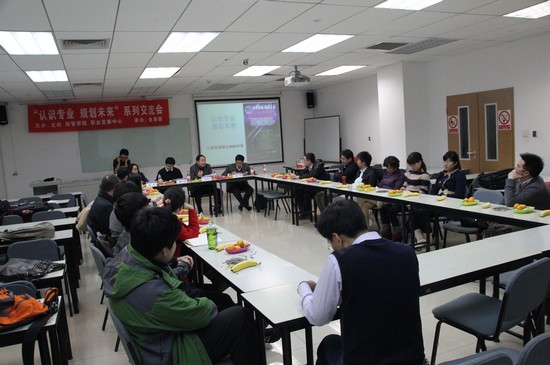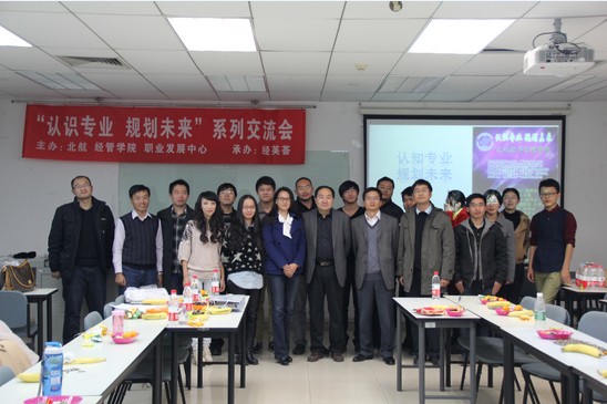 2013年11月7日晚7点,由北航经管学院学生职业发展中心和北航经管分研会主办、北航经管学院经英荟、MB13081班承办的“认识专业、规划未来”系列交流会——MBA专场在新主楼A928成功举办。beats365亚洲体育投注MBA教育中心主任柏满迎教授,优秀校友代表曹子康、邱志刚、韩方以及MB13081班的同学们参加了此次交流会。