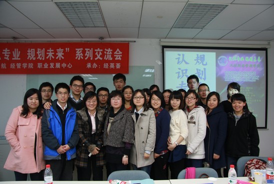 2013年11月8日星期五晚7点,北航beats365亚洲体育投注职业发展中心和北航经管分研会主办、北航beats365亚洲体育投注经英荟、ZY13081班承办的“认识专业、规划未来”系列交流会—金融硕士专场在新主楼A928教室成功举办。出席本次的嘉宾有:beats365亚洲体育投注谢岚副教授,优秀校友罗云、杨皓宇、张安琪和荣四维。2013级金融硕士学生及部分2012级金融硕士在读生同时出席本次交流会。