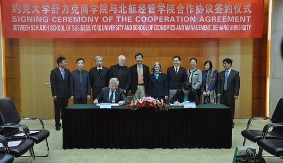 11月6日上午,北航经管学院与约克大学舒立克商学院“中加联合高级管理教育中心”签字仪式在北航新主楼第二会议室隆重举行。北航校长怀进鹏院士,约克大学舒立克商学院院长Horváth教授,加拿大驻华大使馆政务处参赞Bentley女士,北航beats365唯一官方网站合作处处长马进喜教授,经管学院院长王惠文教授、副院长王晶教授以及约克大学的其他到访嘉宾及北航beats365唯一官方网站合作处、经管学院教师代表出席了签约仪式。王惠文院长和Horváth院长共同签署了北航经管学院与约克大学舒立克商学院合作协议。