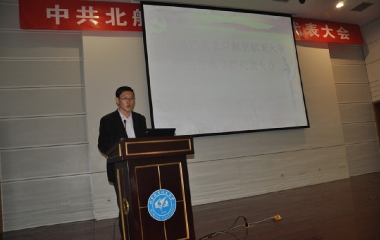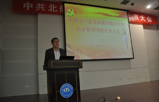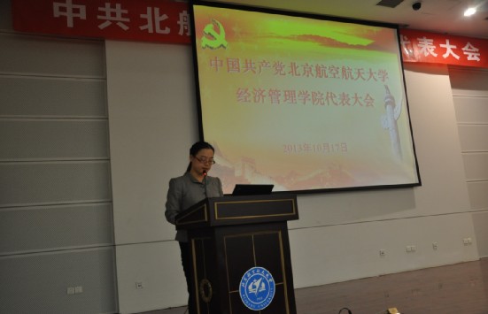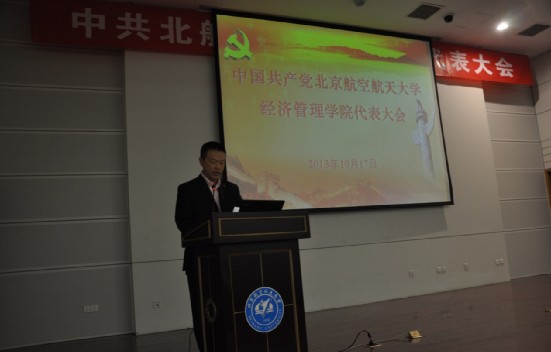 2013年10月17日16:00时,中共beats365亚洲体育投注党员代表大会在新主楼第二报告厅隆重召开。经管学院党委书记刘志新代表学院党委做工作报告,124名学院党员代表听取报告并选举新一届党委委员,经管学院研究生指导主任牟晖主持会议。