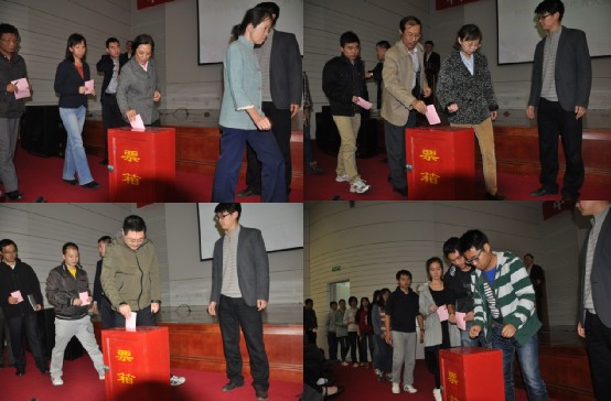 大会举手表决通过经管学院党委副书记高翔宣读的选举办法,举手表决确定候选人人选,并审议通过监票小组名单,由学院保险与风险管理系副教授秦中峰担任总并主持投票选举工作。大会应到128名正式代表,实到124名,符合会议有效人数。大会通过无记名差额选举(按姓氏笔画为序)方卫国,王晶,刘志新,牟晖,周宁,徐光宇,贾国柱,高翔,谢岚等9位同志均以超过半数票当选为新一届经管学院党委委员。