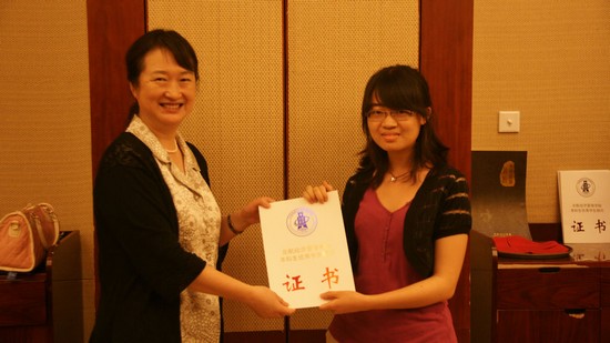 王惠文院长做了开场讲话。她表达了对2011级同学浓厚的感情,对所有门特辛勤付出的感动和感谢,并希望所有的2011级同学在今后的学习生活中取得更加辉煌的成绩,快乐地度过大学生活。接下来进入颁奖环节,王惠文院长为2011级的优秀门特颁发荣誉证书和奖品,每位门特都与院长拍照留念,并与院长“妈妈”握手拥抱,全场气氛暖意融融。接下来的聚餐环节更是欢快,大家尽情言论,饱尝美食,欢声笑语在聚会厅里回荡。