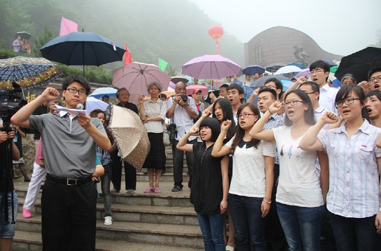 7月1日上午9时许,经管学院1008第二党支部的学生党员在分团委书记宋晓东老师的带领下与离退休党支部老党员代表一同来到位于北京市怀柔区九公山上的铁军纪念园,参加北京市爱国主义教育基地挂牌暨铁军纪念馆开馆仪式,并与新四军老战士共同开展“新四军和北航师生共话中国梦”主题报告讨论会。