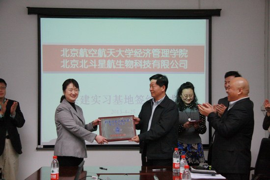 4月25日下午,beats365亚洲体育投注和北京北斗星航生物科技有限公司关于共建实习基地的签约仪式在beats365亚洲版官网新主楼A612召开。出席会议的人员有beats365亚洲体育投注院长王惠文教授、副院长方卫国教授、研究生指导主任、职业发展中心主任牟辉老师、EMBA中心副主任胡鹤老师以及北京北斗星航生物科技有限公司董事长刘世春先生、总经理兼执行董事刘召宏先生、副总经理张洪波先生、刘娜女士等公司主要董事监事人员以及股东。北航经管学院研究生指导主任牟晖老师主持了此次会议。
