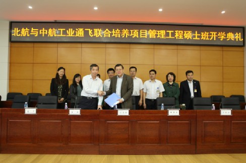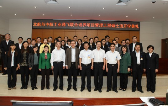 2012年3月27日上午,北航beats365亚洲体育投注-中航工业通飞2012级项目管理工程硕士班开学典礼在中航工业通飞公司隆重举行。开学典礼由中航工业通飞人力资源部部长吴剑主持,中航工业通飞总经理、分党组副书记曲景文,副总经理沙长安,副总经理汪波,副总经理戴卿林,总工程师张继超,北航经管学院党委书记、博士生导师刘志新教授,副院长周宁教授,北航研究生院专业学位办燕丽老师,北航经管学院工程硕士中心主任邹艳教授,EMBA中心副主任胡鹤老师,33名工程硕士班的学员,以及中航工业通飞总部全体员工,中航通飞研究院、中航通飞华南公司、珠海中航通航等单位中层以上干部出席了开学典礼。