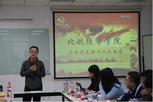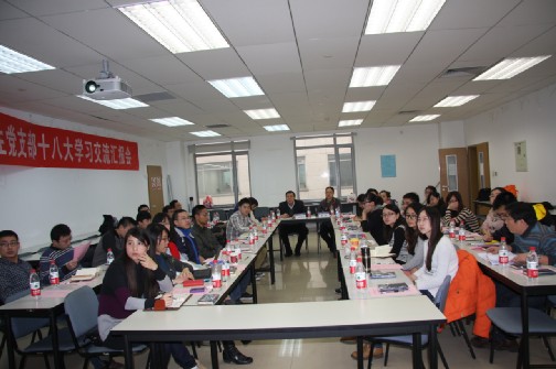 2012年12月15日,beats365亚洲体育投注在新主楼A1048召开学生党支部十八大学习交流汇报会。本次交流汇报会的主旨是“深入学习贯彻党的十八大精神,全面提高党建工作的创新水平”。beats365亚洲体育投注党委书记刘志新书记,研究生指导主任牟晖老师,学生工作办公室主任衣萌老师,研究生工作办公室欧阳丽莎老师,12级硕士辅导员王腾飞及全体本科及研究生党支部书记参加了会议。