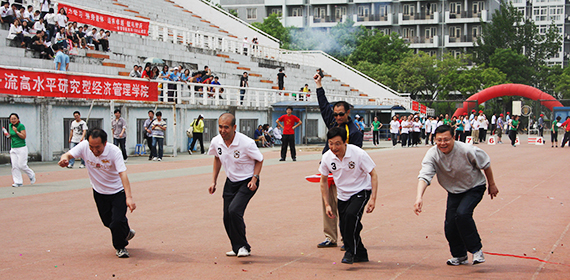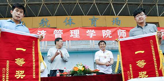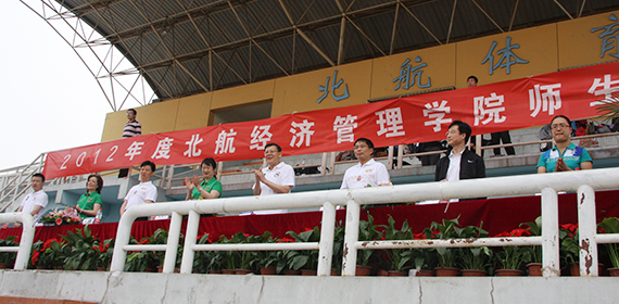 5月13日下午,在喜迎北航建校60周年之际,beats365亚洲体育投注2012年度师生运动嘉年华活动在北航体育场举行。伴随着欢快的运动员进行曲,学院在职教职工、退休教师、本科生、硕士生、MBA及博士生等各个方阵踏着轻快整齐的步伐走进体育场。开幕式由学院党委副书记高翔主持。