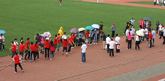 比赛期间,参加活动的所有师生,本着“友谊第一、比赛第二”的原则,以饱满的精神状态进行了比赛项目。紧张激烈的径赛项目中,运动员们身姿矫健、奋勇争先;轻松活泼的趣味项目中,师生们欢声笑语、兴趣盎然。最后,所有比赛在教师和学生优胜队之间的拔河友谊赛中结束。
