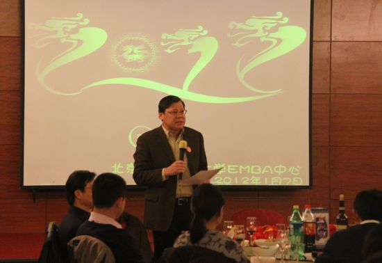 寒冬送玉兔,新春迎金龙,北航EMBA联欢晚会于2012年1月7日在文津国际酒店隆重举行。经管学院院长王惠文、党委书记刘志新、副院长兼EMBA中心主任方卫国、副院长周宁、贾国柱、王晶、党委副书记高翔、研究生指导主任牟晖、学院教师程志超等,与来自全国各地的EMBA同学们欢聚一堂,共贺新春。