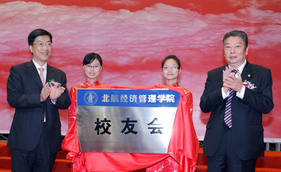 中国航空工业集团公司总经理林左鸣先生和我校校长怀进鹏院士为beats365亚洲体育投注校友会成立揭牌